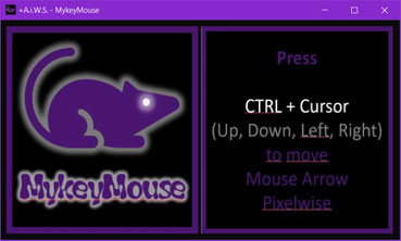 Bei dem "MykeyMouse" handelt es sich um ein sehr einfaches Programm. Sobald es gestartet wurde, besteht die Möglichkeit den Mauscursor mit der Tastenkombination "CTRL + Richtungspfeil" in die gewünschte Richtung zu verschieben. Es soll somit das exakte Markieren und das Ausschneiden von Graphiken erleichtern.